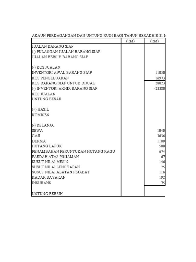 Akaun untung rugi bagi tahun berakhir pada. 13mark ah a Akaun Perdagangan dan Untung Rugi bagi tahun berakhir 31 Mac 2019. Add to my workbooks 0 Download file pdf Embed in my website or blog Add to Google Classroom.